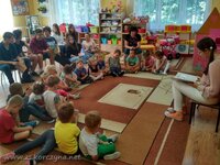 Młodzież czyta bajki dzieciom w przedszkolu w Korczynie