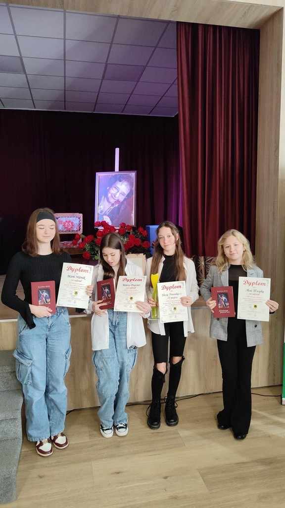 24 października br. W Gminnym Ośrodku Kultury w Jedliczu miała miejsce XXVIII EDYCJA KONKURSU RECYTATORSKIEGO POEZJI WSPÓŁCZESNEJ autorstwa Bronisławy Betlej. Patronat nad konkursem objął Związek Literatów Polskich; Oddział w Rzeszowie, a gościem honorowym (i jednocześnie członkiem jury) była Pani Elżbieta Betlej, córka śp. Poetki. Naszą szkołę reprezentowały uczennice z klasy 7c – Marysia Niżnik, Eliza Paradysz, Milena Prajzner oraz Maja Wajda.